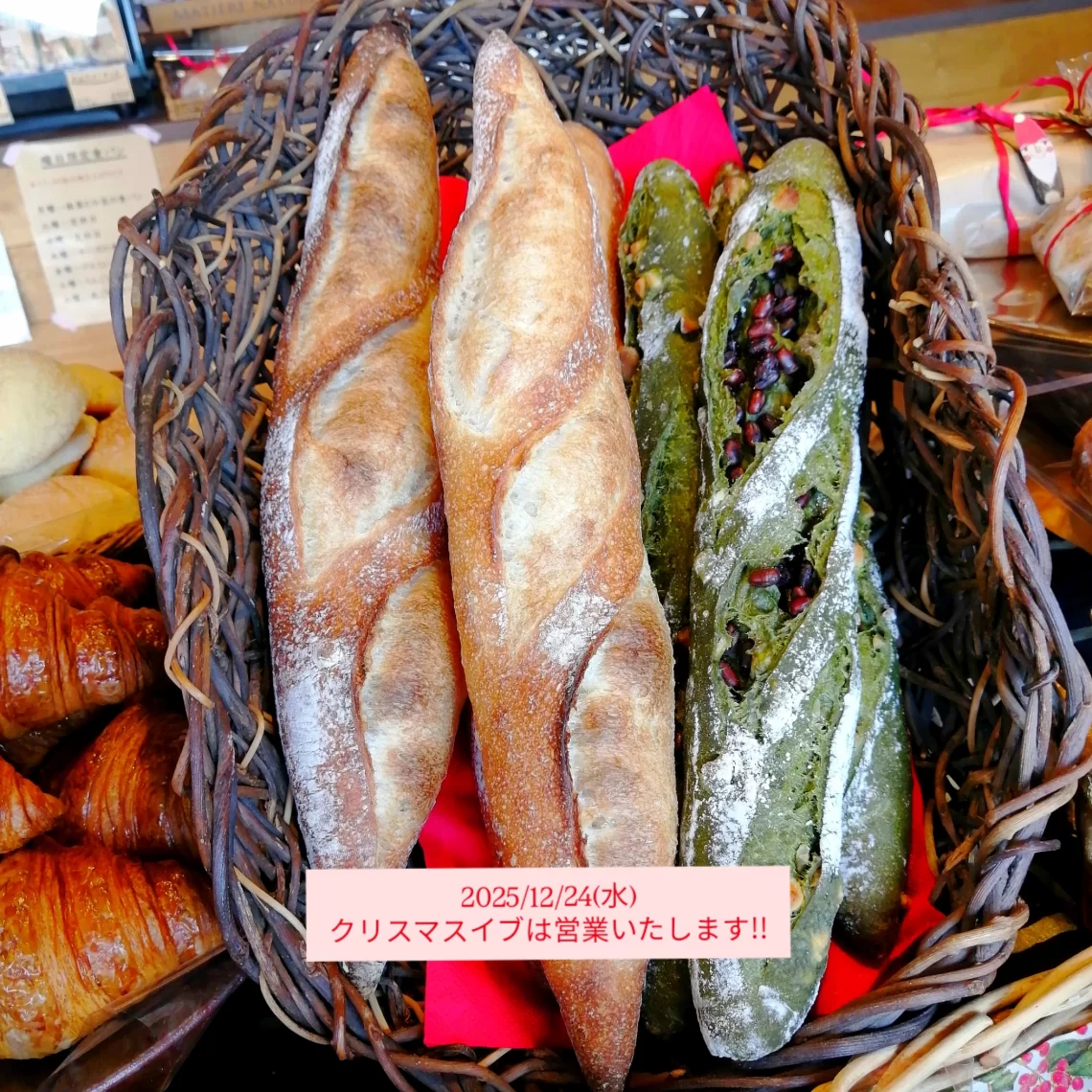 12/24(水)は特別営業です🎄 2025年11月28日 2025/11/28(金)今年のクリスマスイブは水曜となり通常は定休日ですが、“特別営業”とさせていただきます😊12/24(水)は、11:00-17:00頃まで通しで営業いたします!!12/25(木)は通常営業ですので、11:00-14:00、16:00-19:00の2部制での営業となります。クリスマスのお料理にフランスパンの需要が増える見込みですので、ご予約をおすすめいたします。クリスマスメニューのチーズフォンデュに、シチューに、オープンサンドにぜひフランスパンをご利用ください🥖🥖🥖店頭又はお電話(0533-56-9839)にてご予約を承っております。よろしくお願いいたします。 前 ストールアルザシアン🎄🎅🎄 最近 12月営業カレンダー🎄